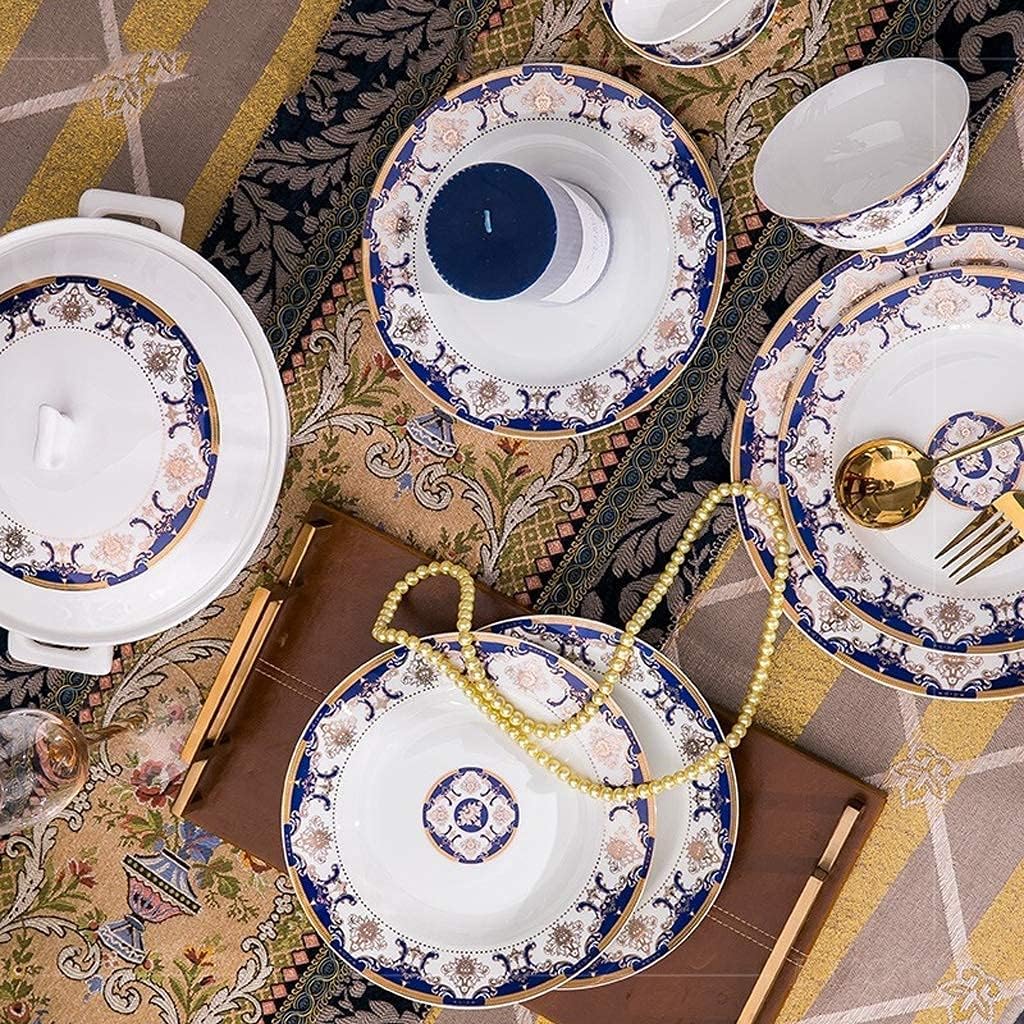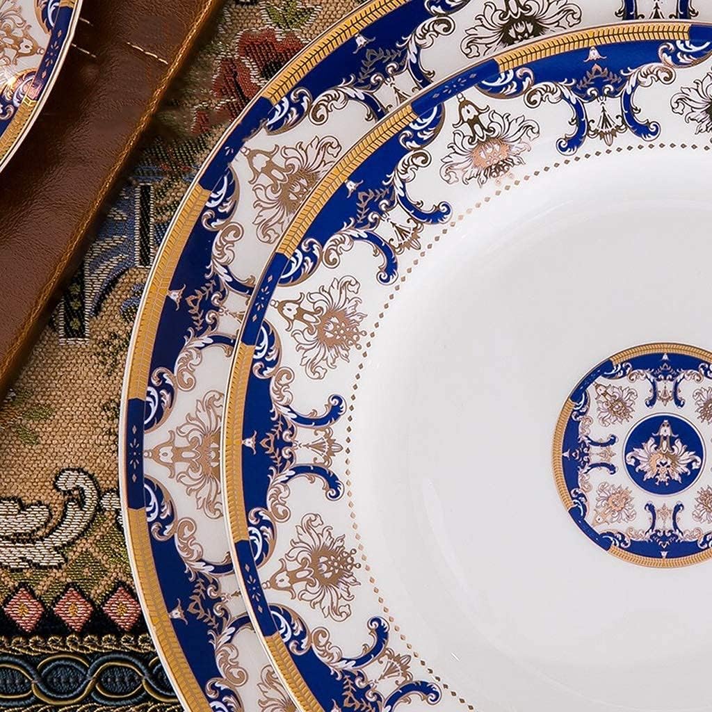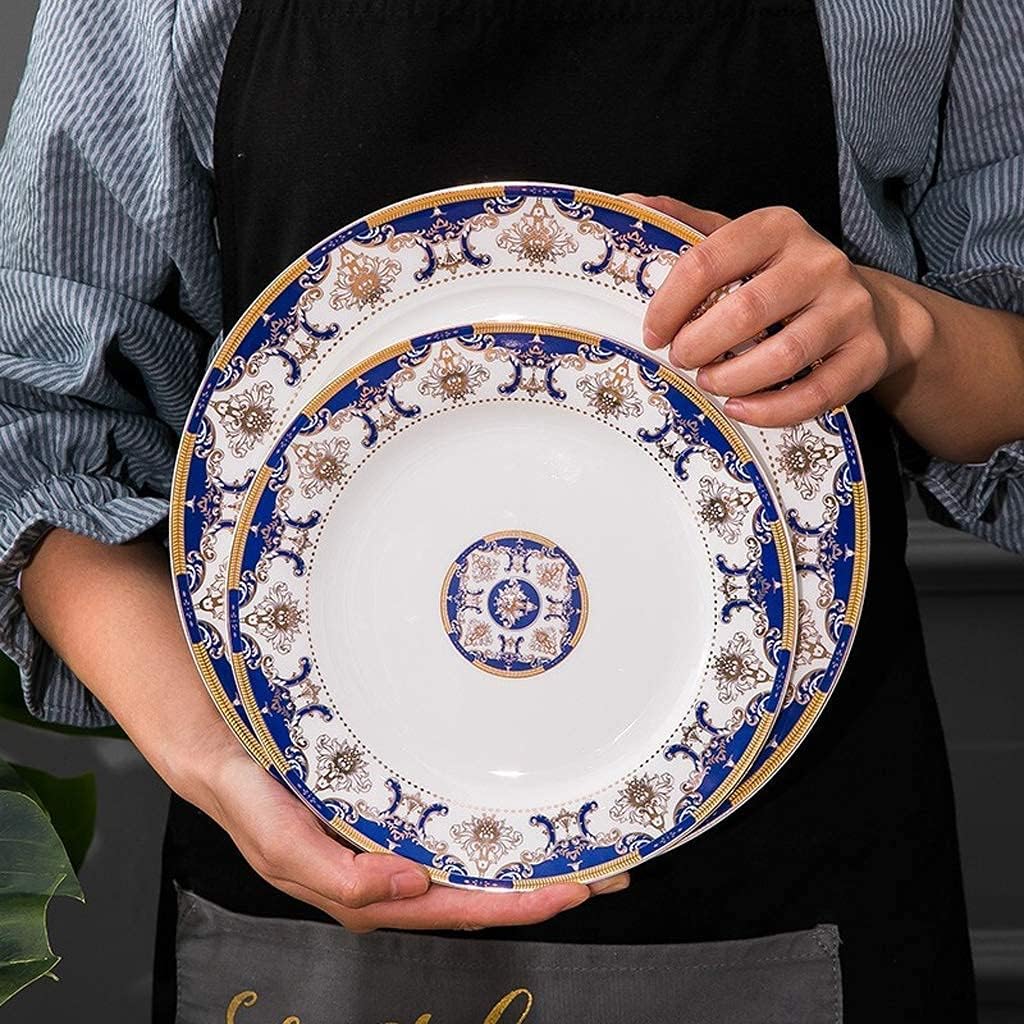 • Design exclusivo: o padrão azul dos talheres é combinado com a elegante borda dourada e a proporção entre o intervalo de listras é mais moderna. Cada lugar é decalques requintados, estrutura de proteção durável e de três camadas, embalagem profissional à prova de choque, protege os pratos de danos