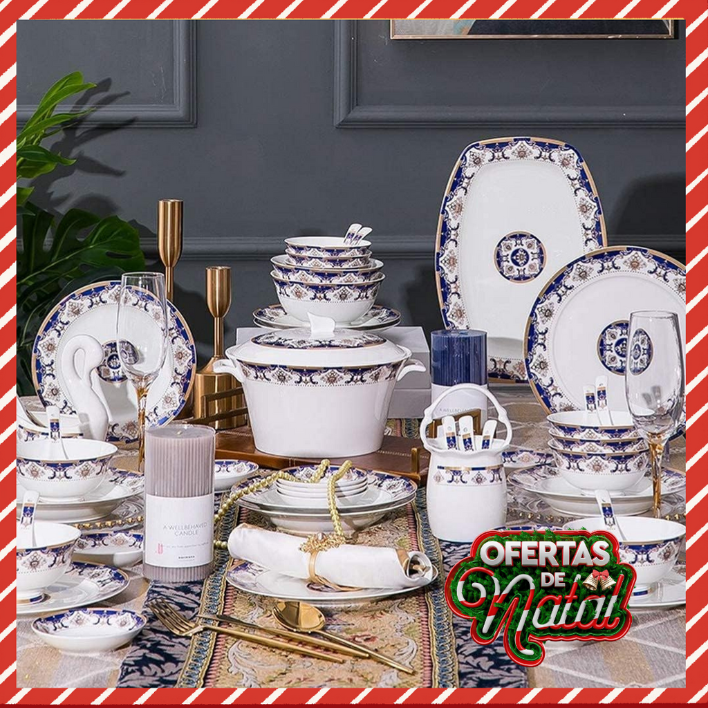 Conjunto de louça elegante, 48 peças de luxo azul - OFERTA DE NATAL