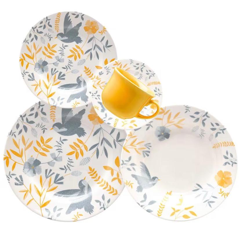 O Aparelho de Jantar Donna Bem-te-vi é fabricado em Cerâmica de alta resistência e excelente qualidade, e conta com pratos rasos e fundos para aperitivos e refeições principais, além de pratos para sobremesa, xícaras e pires, garantindo que você sirva um banquete completo, da entrada até o cafezinho, possibilitando que seus convidados sejam recepcionados com elegância e sofisticação do início ao fim.