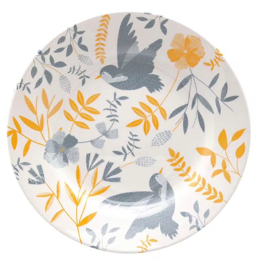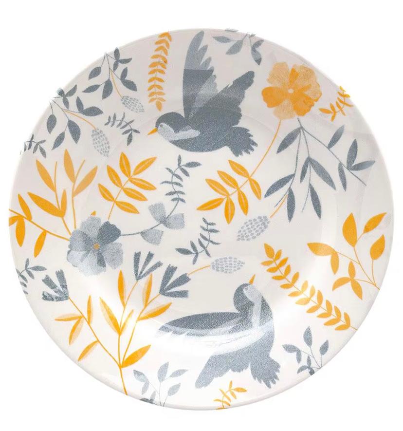 Ideal para ocasiões especiais como festas e comemorações, ou para almoços e jantares informais do dia a dia, esse conjunto possui design inspirado no rico ecossistema brasileiro, com estampa de folhagens, ramas, flores e pássaros, desenhados com linhas delicadas e fluídas que adicionam um toque de leveza e conexão com a natureza. Essa estética foi especialmente desenvolvida para que as peças possam complementar a decoração de forma criativa e autêntica, transformando o visual caseiro de suas receitas em apresentações convidativas, rebuscadas e profissionais, encontradas nos melhores restaurantes.